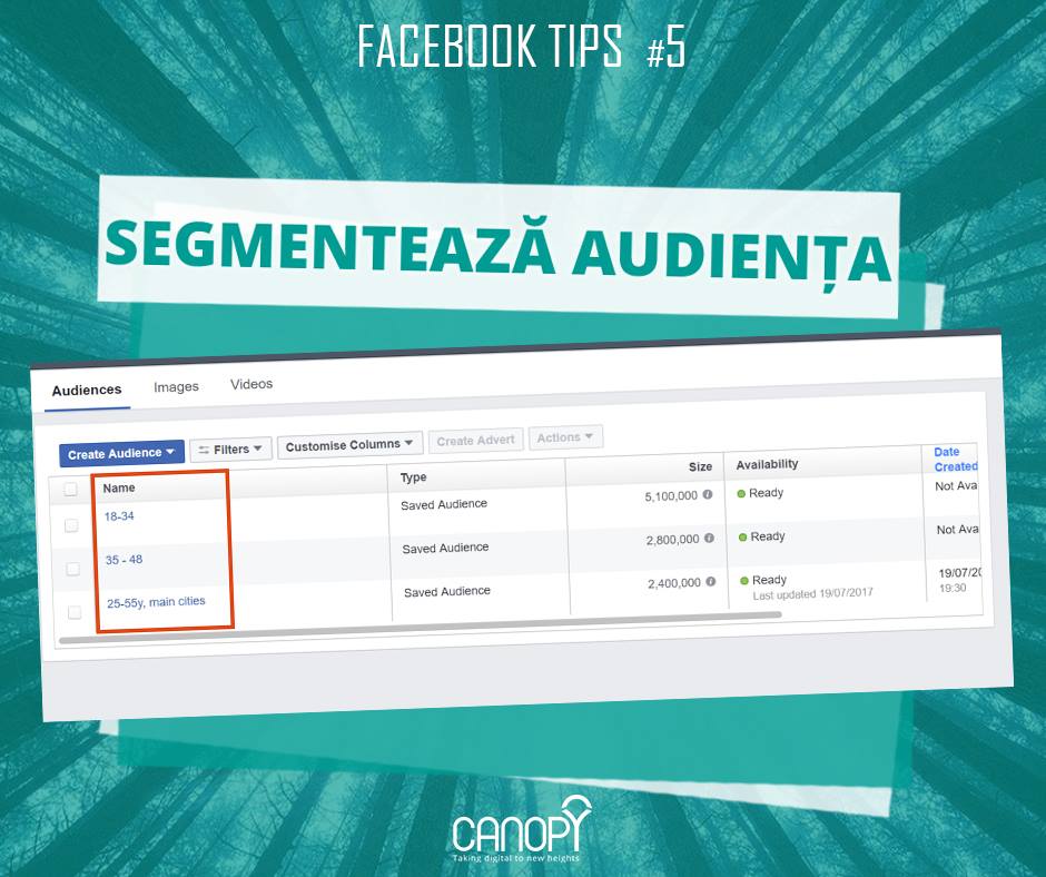 Facebook recomandă utilizarea bugetului per campanie, nu per ad set, și testarea plasamentelor automate. Astfel, algoritmul de pixel poate să îți genereze cele mai bune rezultate.