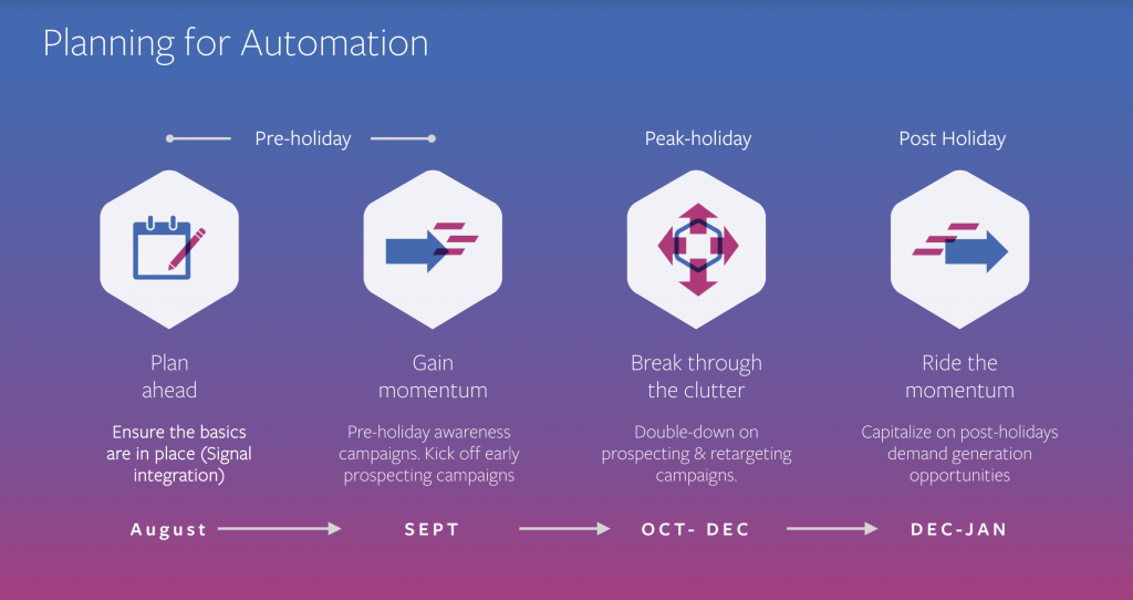 Facebook recomandă începerea strategiei pentru această perioadă încă din luna august, pentru a putea testa diferite audiențe și produse ce pot fi vedetă în acea perioadă. Acum e târziu, dar îți poți pune pe listă pentru anul viitor.